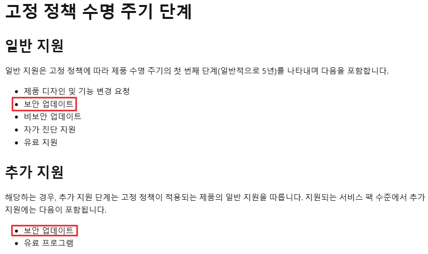 보안 업데이트를 일반 지원과 추가 지원 단계 모두에서 제공한다.