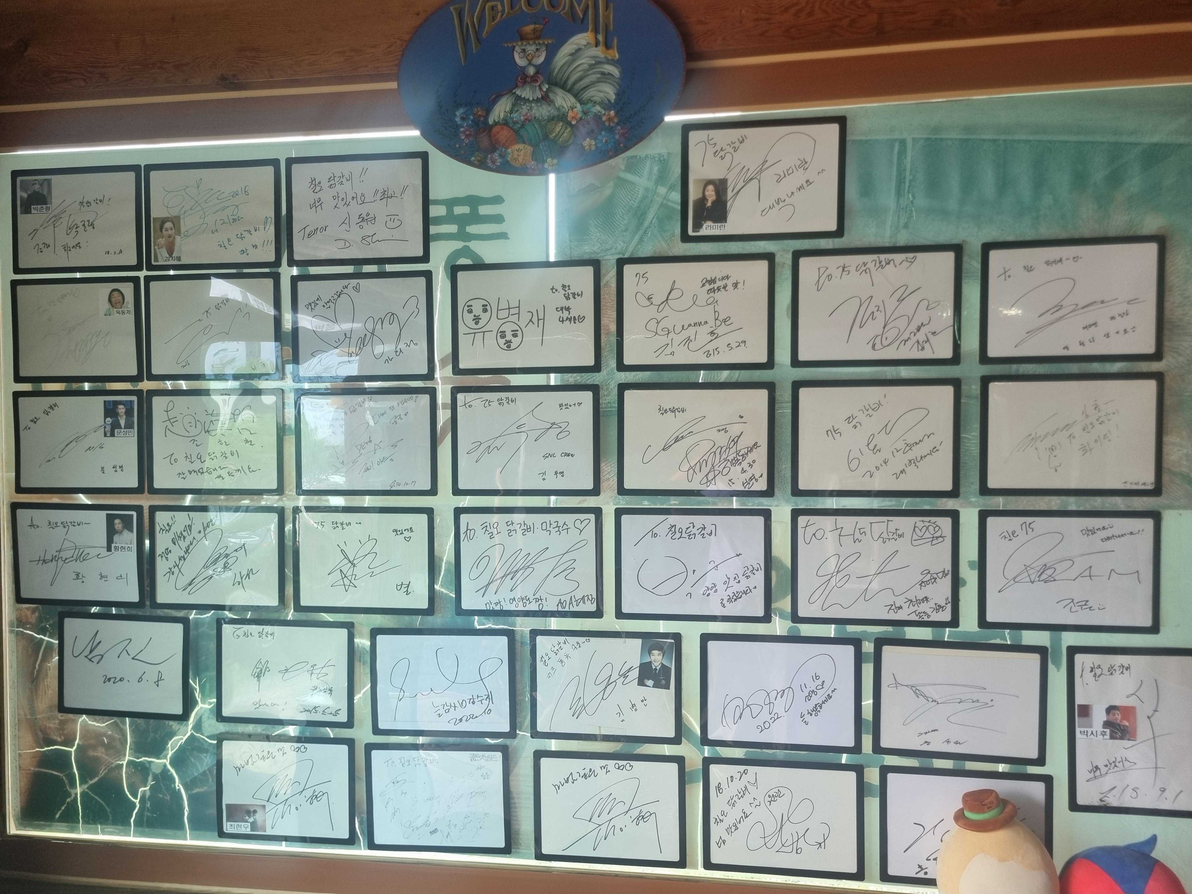 맛집임을 증명하기라도 하듯 입구에는 여러 연예인들의 사인이 비치되어 있다.
