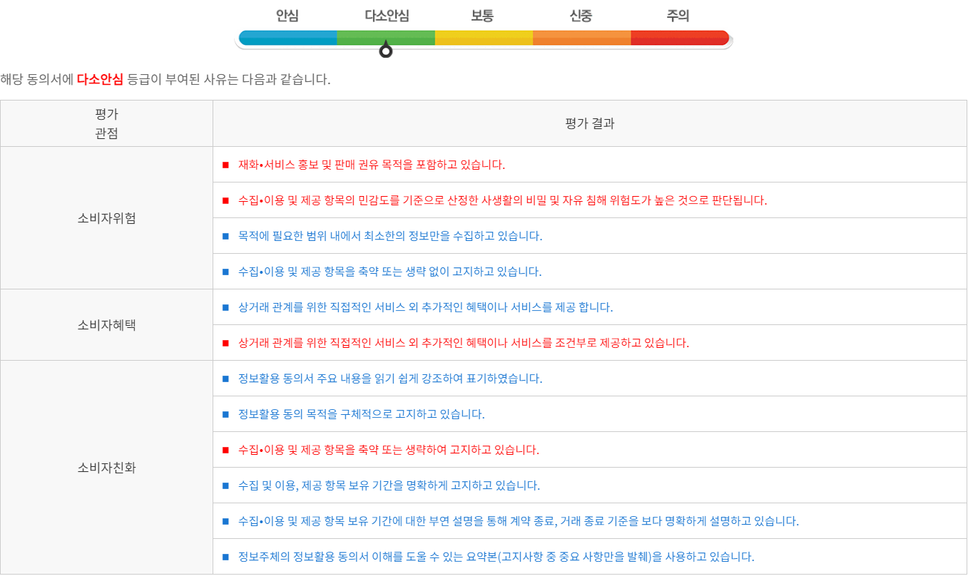 - 소비자 혜택 : 정보주체에게 제공되는 이익이나 혜택의 범위와 지속성