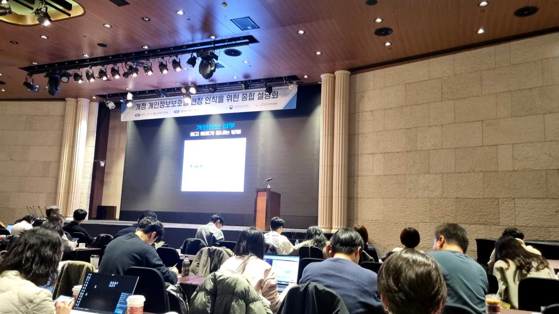 12/11(월) 엘타워 그레이스홀에서 열린 개정 개인정보보호법 현장 안착을 위한 종합 설명회에 참석하고 왔다.