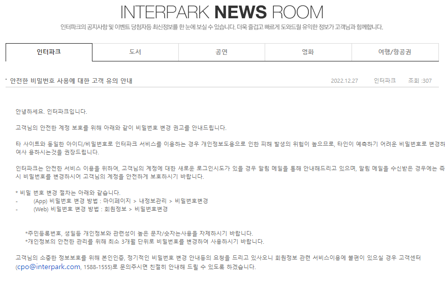 혹시라도 쇼핑몰에서 크레덴셜스터핑 공격이 유행 중이니 이용자에게 비밀번호를 변경하라는 고객 친화적인 공지나 안내를 한 곳이 있는지 좀 찾아봤다.